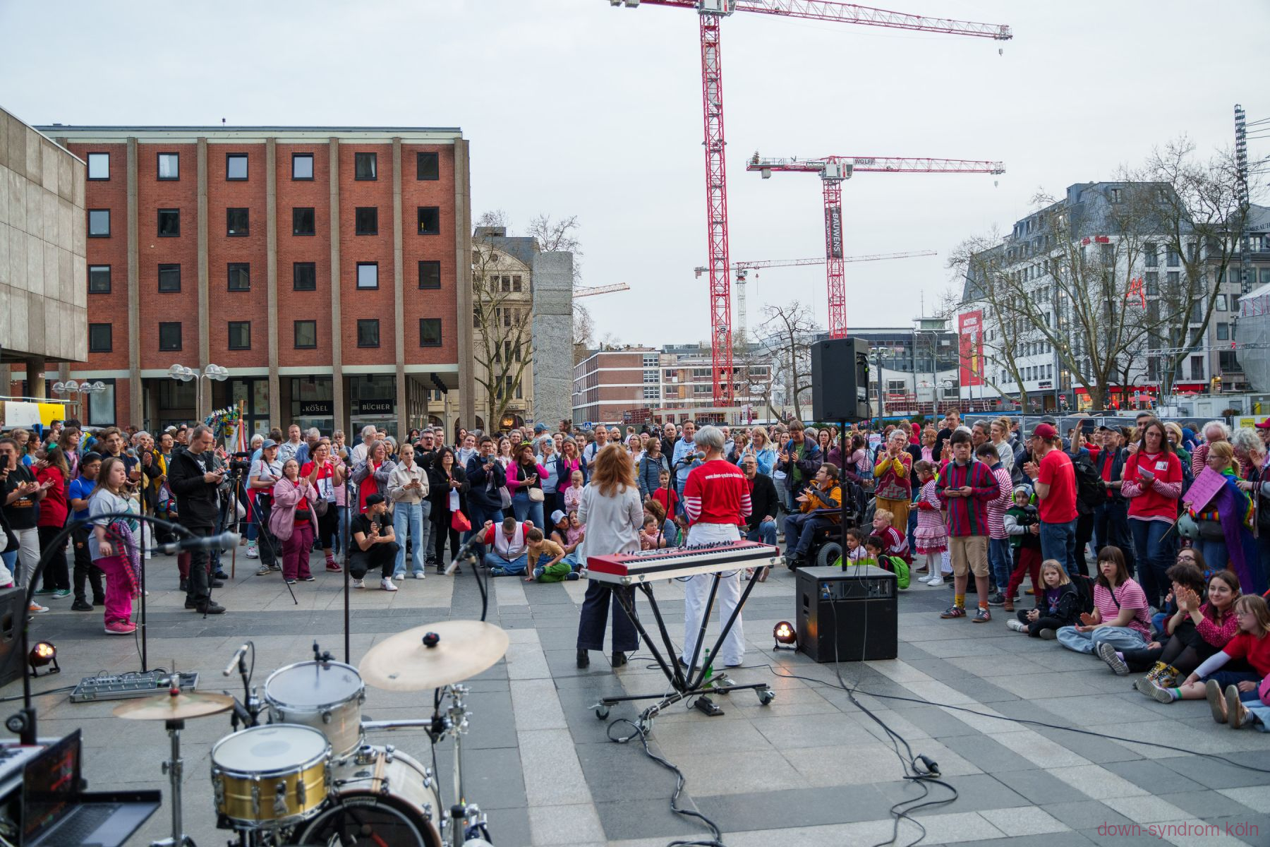 Unser Zug war laut und lustig: Neben den „Helden für Herzen“ in Superhelden-Kostümierung haben uns das Kunstorchester Kwaggawerk (https://kwaggawerk.wordpress.com/) begleitet. Vor dem Kölner Dom fand eine Kundgebung statt. Zu Wort kamen junge Menschen mit Handicap sowie der Vorstand von down-syndrom köln. Zum Abschluss spielte die Kölsche Band Auerbach für uns. Das Highlight: die Jecke Öhrcher begleiteten den Song „21“ mit Gebärden.